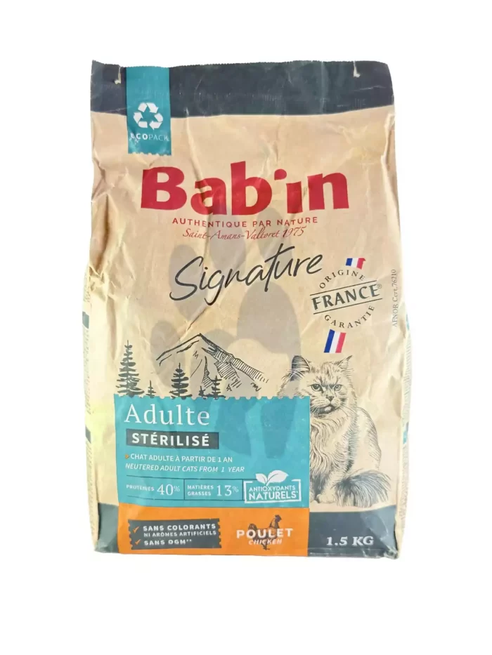 بعد از عقیم شدن، گربه‌ها بیشتر مستعد اضافه‌وزن می‌شوند. غذای گربه بالغ عقیم شده بابین با طعم مرغ با داشتن چربی کنترل‌شده و پروتئین باکیفیت، به حفظ وزن ایده‌آل گربه کمک می‌کند.