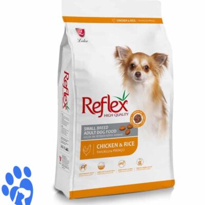 - غذای سگ رفلکس پلاس مخصوص نژاد کوچک با طعم مرغ و برنج: این مدل یکی از محبوبترین محصولات رفلکس است که مخصوص سگهای نژاد کوچک طراحی شده و دارای دانهبندی مناسب، هضم آسان و ترکیبات تقویتکننده سلامت مفاصل است.